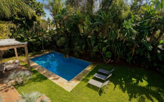 – 1 double salon dont 1 coin cheminée donnant sur une grande piscine orientée Sud et un petit jardin