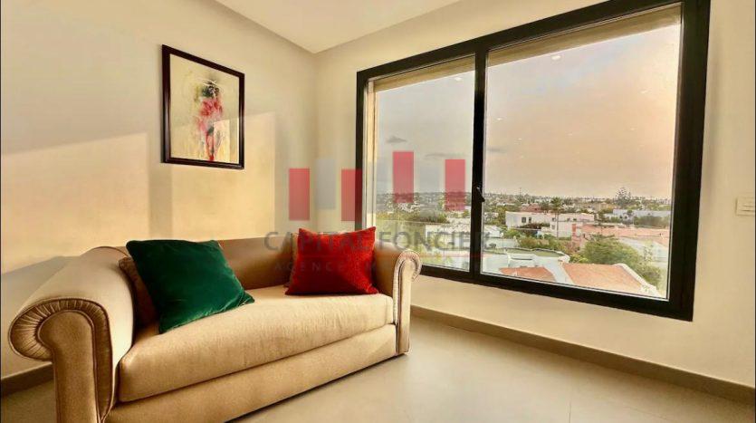 Superbe appartement meublé , tres moderne de 130 m2 situé au cœur de Casablanca, offrant une des plus jolie vue de Casablanca , sur la mer et sur la ville.