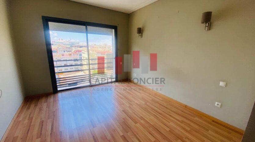 MAARIF EXTENSION : Dans une résidence sécurisée au calme appartement vide en étage élevé d’une superficie de 145 m2 il se compose d’un salon, 3 chambres dont une suite parentale, de 2 SDB, d’un cuisine, buanderie, place de parking titrée. A proximité de toutes les commodités et écoles françaises.